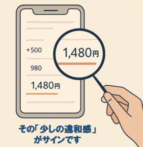 | ② 請求額が少しだけ増えている | 例)980円 → 1,480円 | プランを勝手に上げている |